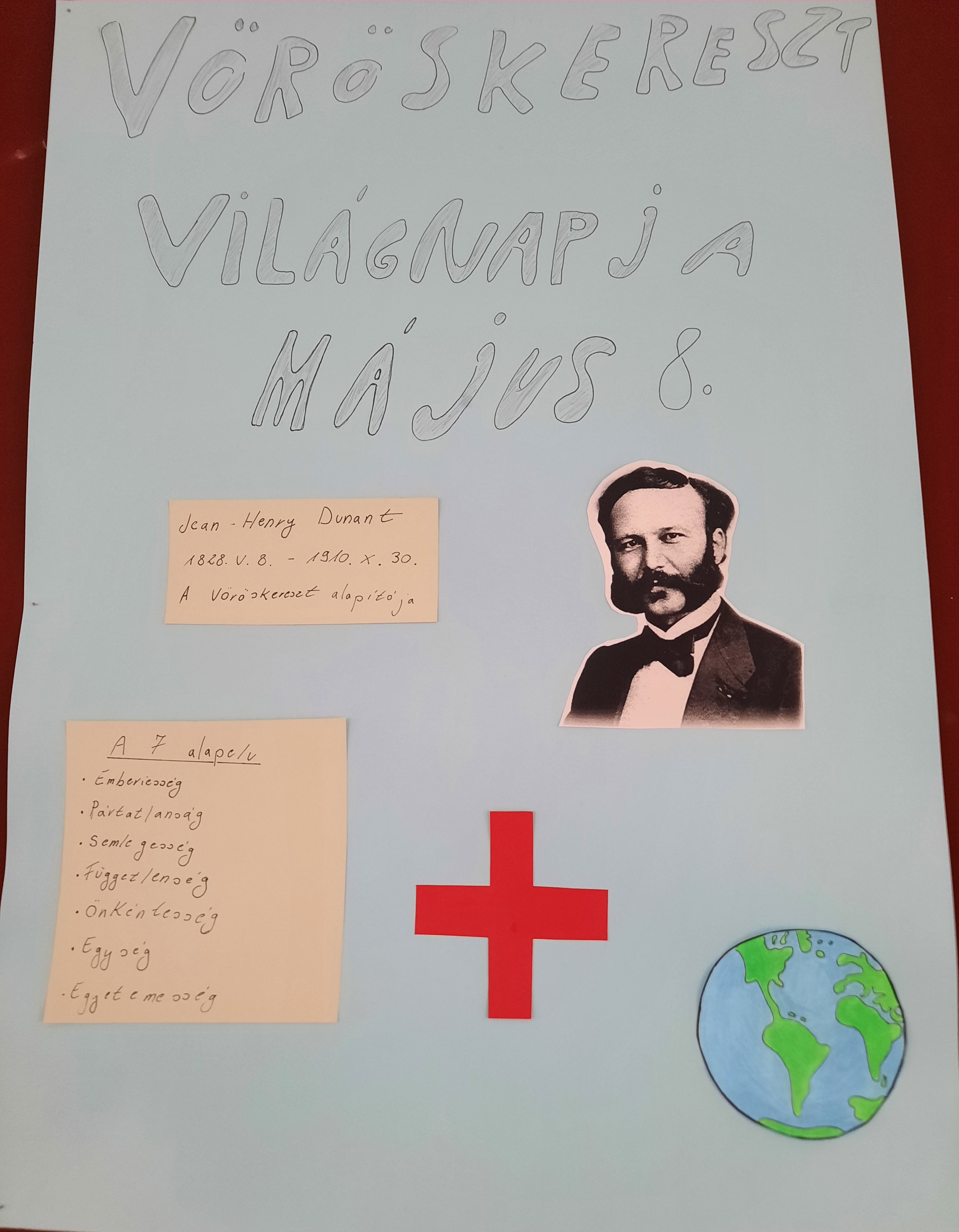 1828.05.08-án született J. Henri Dunant. A Vöröskereszt alapítójának születésnapjára emlékeztek iskolánk “aktivistái”.